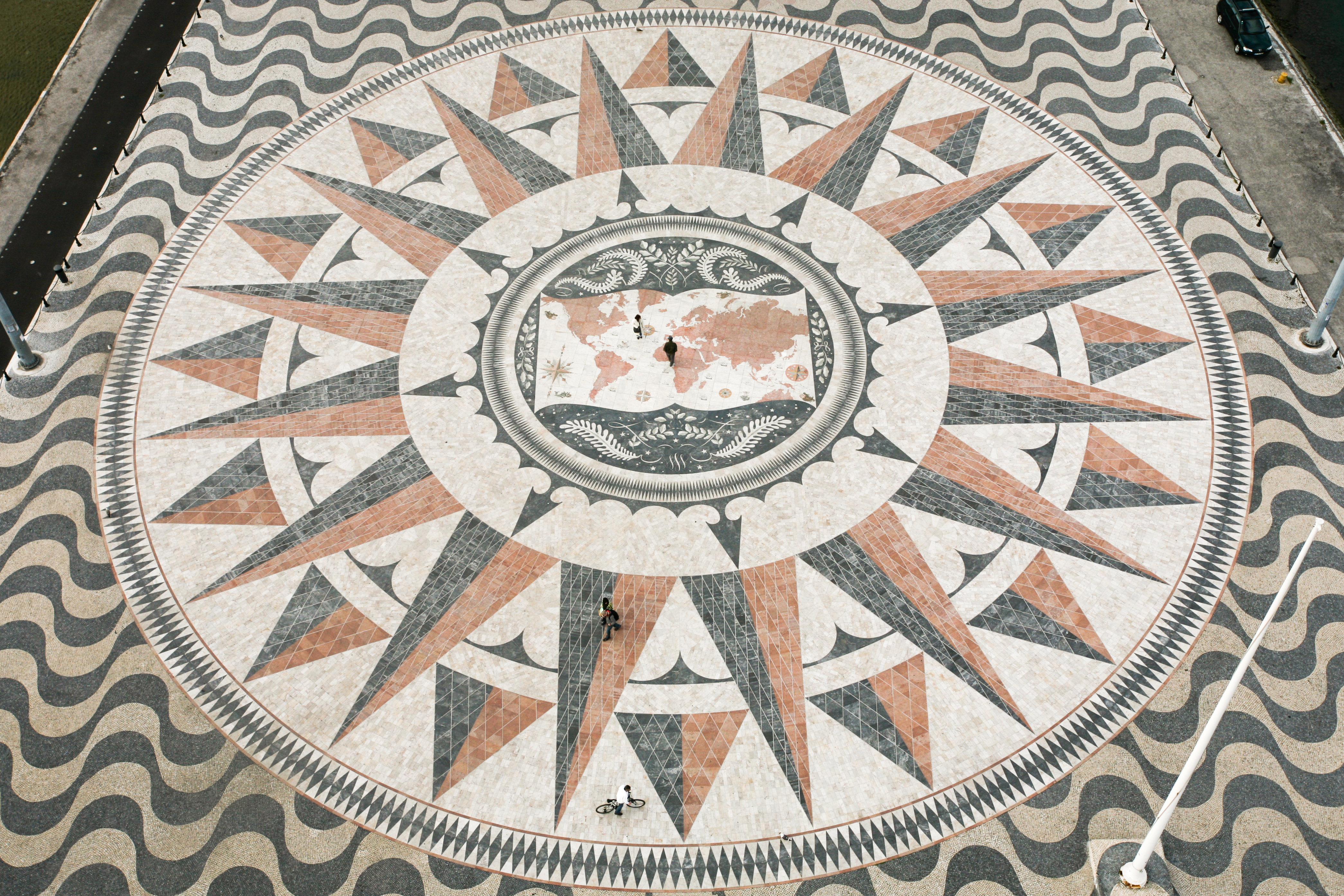 Throughout the city you can find numerous instruments glorifying the colonial period, such as Padrão dos “Descobrimentos”12(including Camões writing Os Lusíadas - ^fig-padrao), countless caravels and compasses drawn in the sidewalks (^fig-rosa-dos-ventos, ^fig-rosa-dos-ventos-lagos, ^fig-caravel-lisboa), statues of the many colonial participants (like Father António Vieira13 surrounded by indigenous children, erected in 2017 - ^fig-padre), shopping malls alluding to the colonial period (e.g. Vasco da Gama, Colombo), as well as other infrastructures, like Rua do Poço dos Negros, that appears to be one more pit for the dead bodies of the enslaved.14