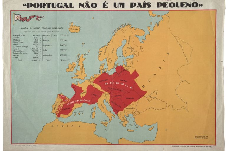 Fig. 7 - Map from 1934’s Colonial Exhibition, saying “Portugal is not a small country”. Al Jazeera, Courtesy of Paulo Moreira. https://www.aljazeera.com/wp-content/uploads/2021/03/PORTUGAL_NAO_E_UM_PAIS_PEQUENO.jpg?resize=770%2C513&quality=80