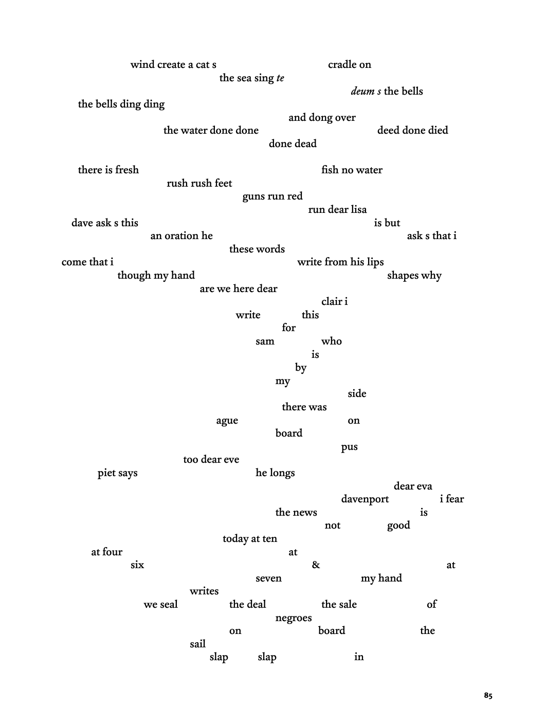 Fig. 9 - Page 85 of Zong! by NourbeSe Philip.