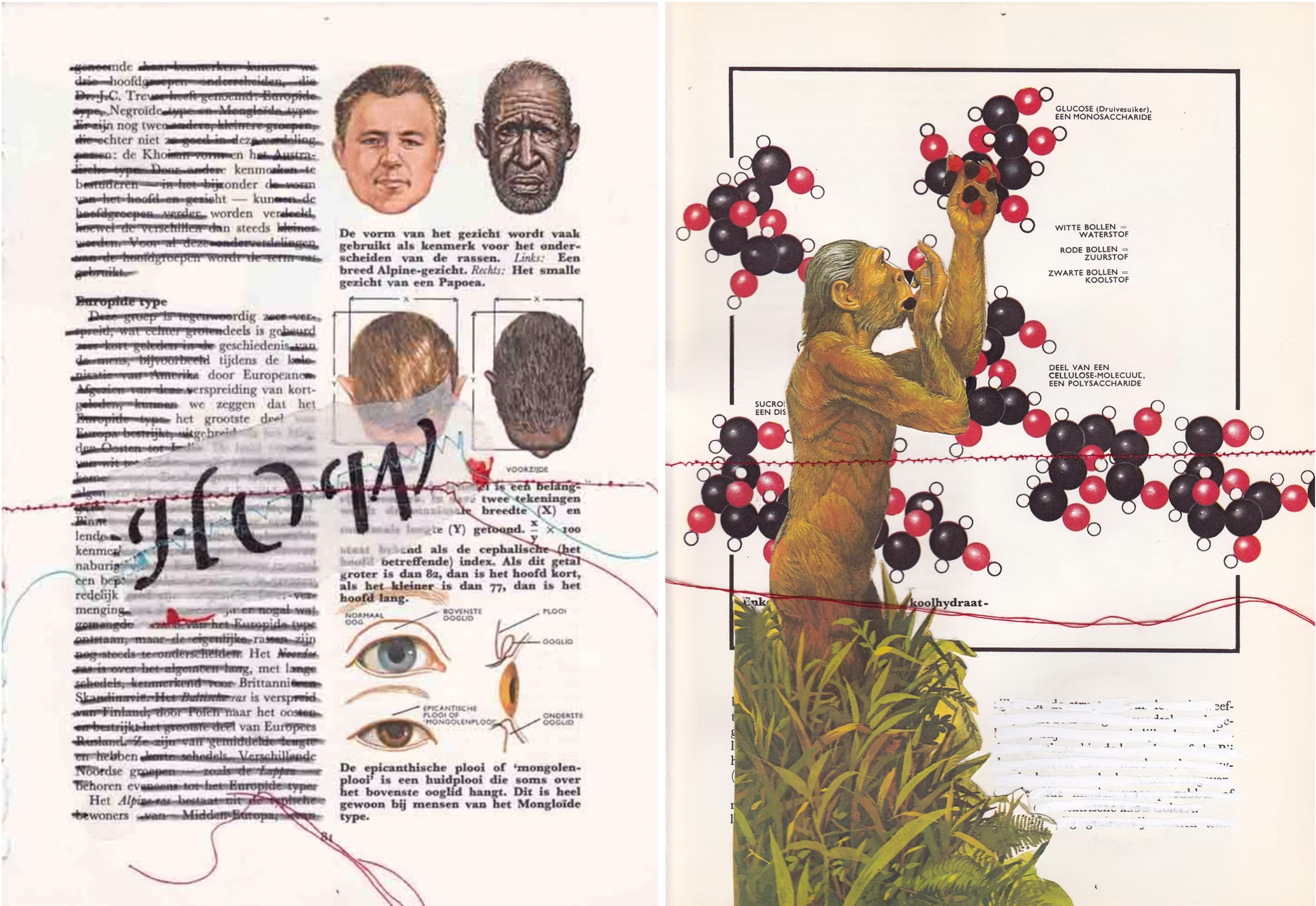 Experimental writing is difficult to define. To grasp the term, I have a small library of references, ideas and techniques that helps in understanding the many shapes it can take: “cut a page in half and switch sides”, “write without the letter A”, “blackout text”, “cut syllables, sentences, paragraphs or shapes, reorder them”, “make footnotes that comment on missing text”.48 For example, NourbeSe Philip’s Zong! erases parts of the legal documents of Gregson v. Gilbert, a case about 150 Africans who were thrown overboard by the captain of a enslaved ship (^fig-zong). In Portugal, within the 1960’s experimental poetry movement (PO.EX), Barros’s Gritos de Angústia, transforms the words “escravos” (“slaves”) and “cravos” (carnations - the symbol of the 1974’s revolution) back and fourth (^fig-barros). In the Netherlands, Kaersenhout uses old history books as a medium for cut-outs, collages and texts (^fig-patricia).