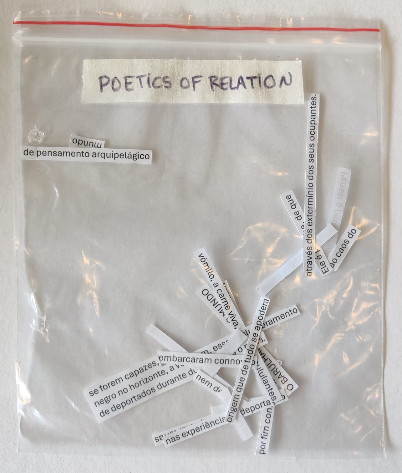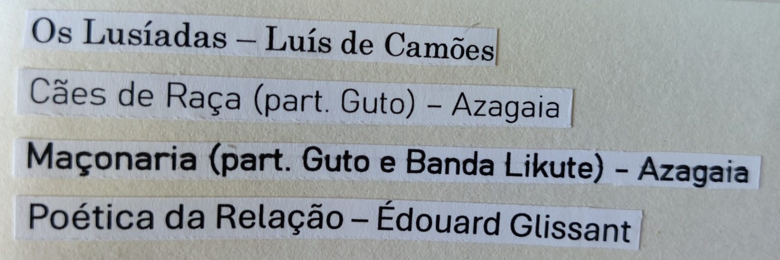 Another question is if and how to include other languages - if it makes sense to, for instance, use cut-outs written in Badiu, Macanese Patuá, Forro, Kikongo, Kimbundu, etc, when I don’t speak them. While incorporating these could prove useful at undermining the Portuguese language as a colonial tool, preserving opacity, refusing uniformity or a passive consumption of text, as well as fully capturing experiences that Portuguese can’t, I believe it should only be done in collaboration to prevent extractive linguistic tourism.